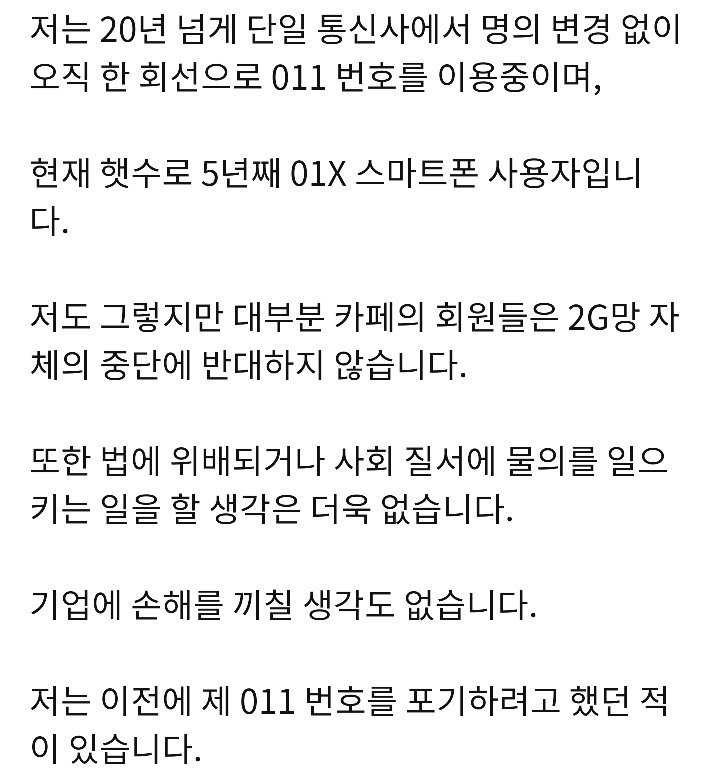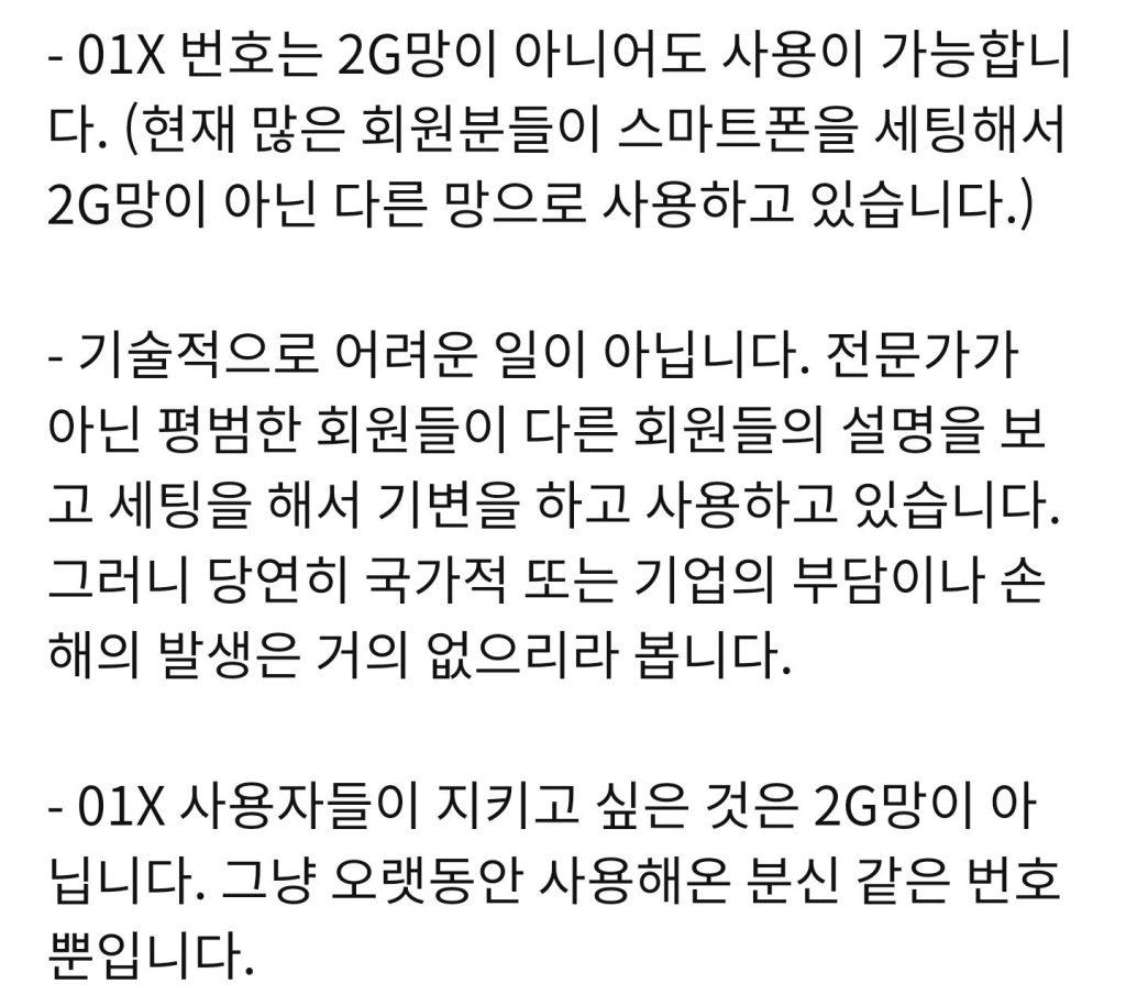 2G 보상대책은 현재 01X 사용자를 위한것이 아닌