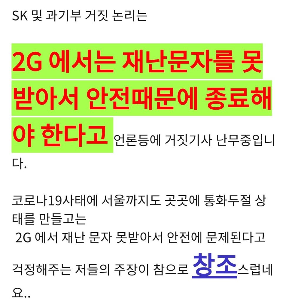 2G 망은 “장비 노후화”.. 일리 있는 설득입니다.