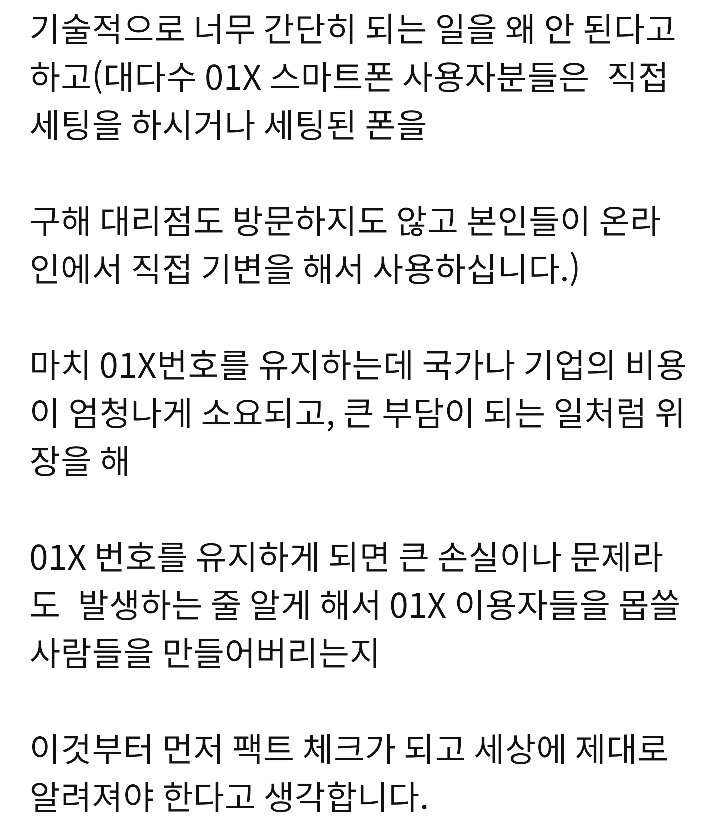 01X번호를 사용중인 사람들은 010번호로 바꿔야 하지요.