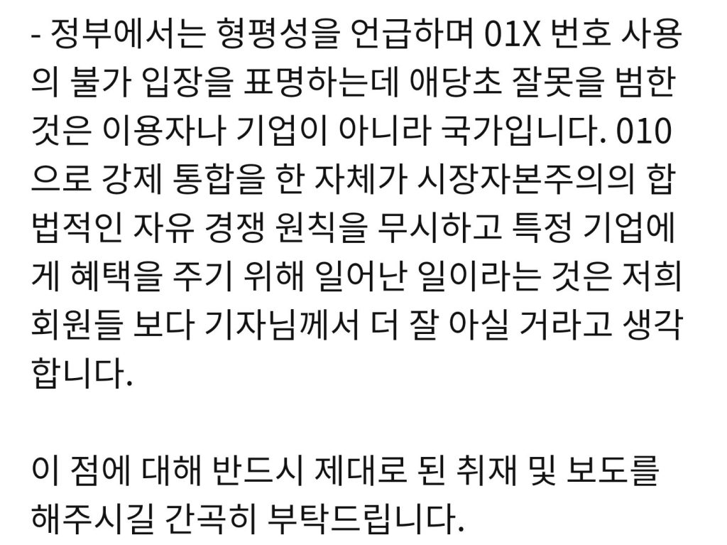 잘못된 “010 통합정책”을 갈아엎고
