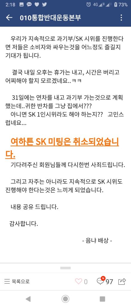 010 통합반대운동본부 SKT2G님의 글입니다