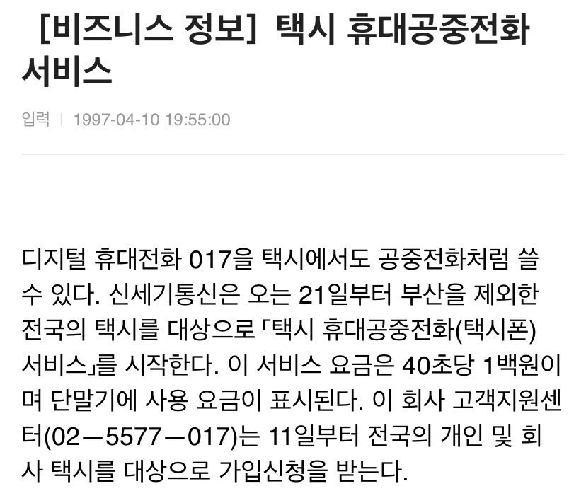 이 택시 공중전화는 011 (SK텔레콤)과 017(신세기통신)
